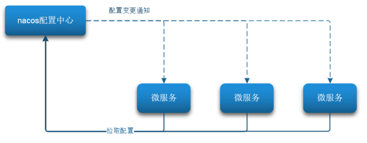 Nacos一方面可以將配置集中管理,另一方可以在配置變更時(shí),及時(shí)通知微服務(wù),實(shí)現(xiàn)配置的熱更新。
