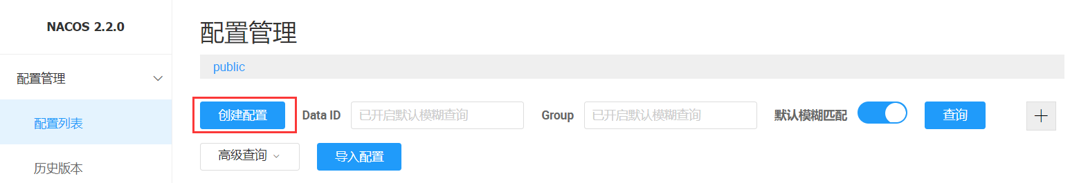 我們創(chuàng)建命名空間, 通過(guò)切換對(duì)應(yīng)的命名空間,然后再通過(guò)Group和DataID來(lái)進(jìn)行切換,即可以按照Namespace+Group+DataId來(lái)切換使用不同的配置文件。