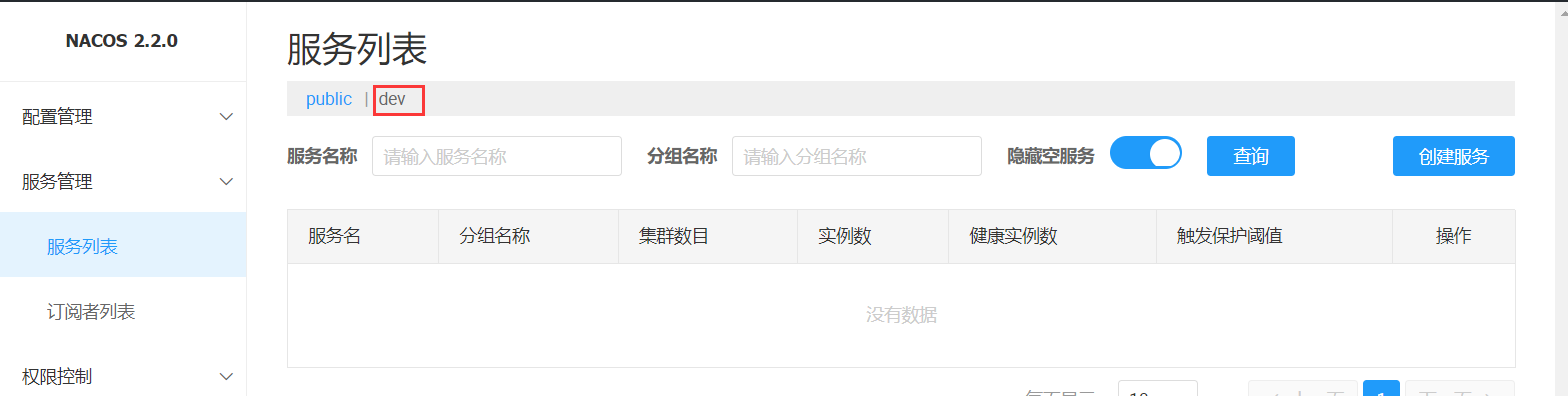 點(diǎn)擊服務(wù)列表和配置列表,查看多出一個(gè)命名空間