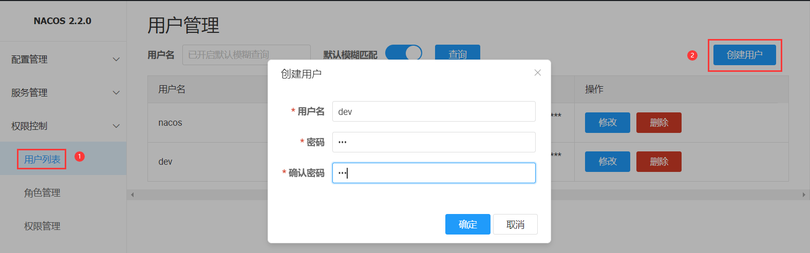 在Nacos頁(yè)面上點(diǎn)擊用戶(hù)列表,在列表頁(yè)面點(diǎn)擊創(chuàng)建用戶(hù)