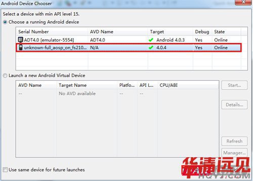 注意:如果在調試開發板的時候,出現ADB連接不上的問題(已知華清遠見FSPAD723開源平板),可以試著替換Android SDK的ADB工具(把光盤\Android應用開發環境\ADB\ADB1.0.26\下的4個文件拷貝到用戶ADT解壓目錄下的sdk\platform-tools中)