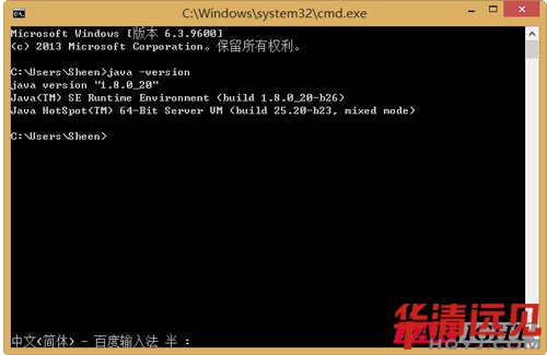 安裝完成后,利用以下步驟檢查安裝是否成功:打開Windows CMD窗口,在CMD窗口中輸入java –version命令,如果屏幕出現下圖所示的代碼信息,說明JDK安裝成功。