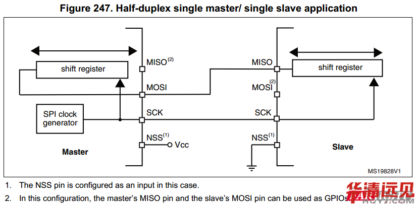 SPI主機-從機半雙工通信: