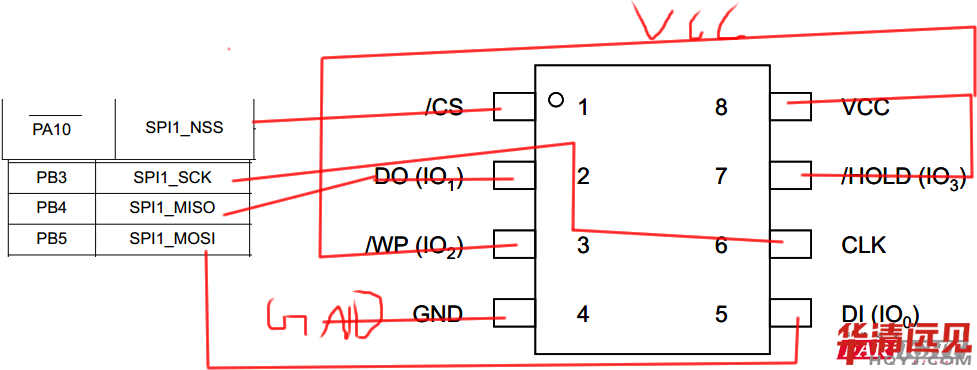 其實是這樣的,前面介紹SPI的時候,說是三線制,主要是說數據通信所需要的線,即CLK、MISO、MOSI這三根線是SPI通信的基礎,而NSS片選線有時候在特定情況下是不必要的(這個下一篇文章中我會詳細介紹),所以,問題就這樣愉快的解決了。哈哈!這種感覺是不是很爽!!嘿嘿。