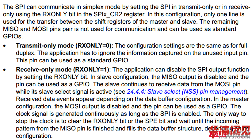 當然,這其實只是SPI通信硬件接口的一部分,而且是基礎的部分。那么現在就STM32F030的硬件SPI資源進行講解。打開參考手冊《STM32F030x468C and STM32F070x6B advanced ARM®-based 32-bit MCUs.pdf》