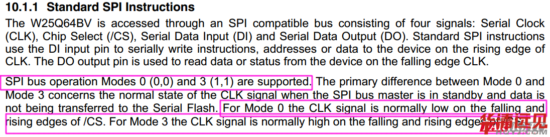 看見沒!SPIFlash支持兩種SPI標準通信模式,分別是