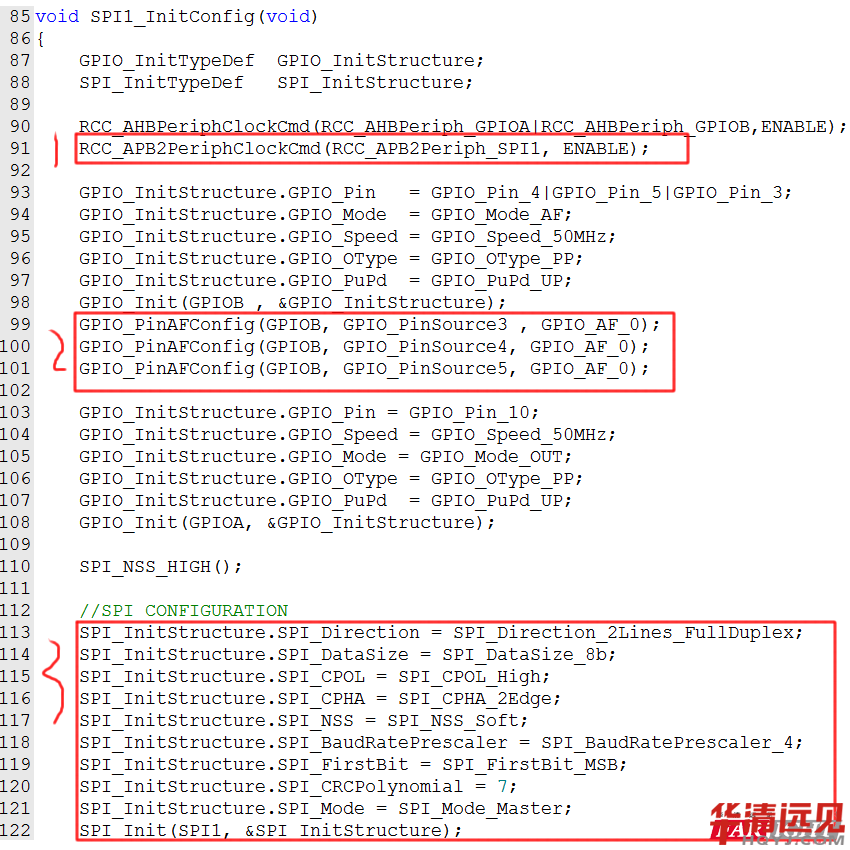 SPI的初始化配置: