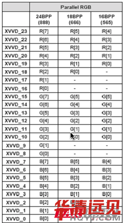 對(duì)于8bit單路TTI,輸出接口,共有24條RGB數(shù)據(jù)線,分別是R0~R7紅基色數(shù)據(jù)8條,B0~B7綠基色數(shù)據(jù)8條,BO~B7藍(lán)基色數(shù)據(jù)8條,共3*8=24條。由于基色RGB數(shù)據(jù)為24bit,因此,也稱(chēng)24位或24bitTTL接口。