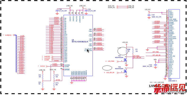 其實(shí)就是:把三星芯片輸出的TTL(RGB)信號(hào)轉(zhuǎn)換成LVDS差分信號(hào)輸出的LCD接收端。