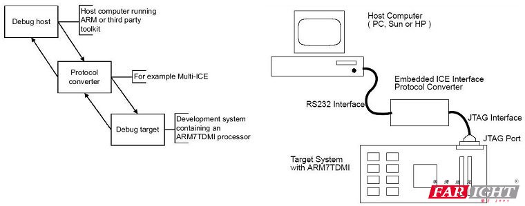 ● 協議轉換器 ARM7TDMI典型的調試架構如下圖所示: