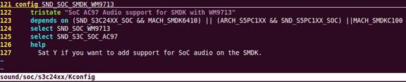 修改 sound/soc/s3c24xx/Kconfig,使其支持FS_S5PC100平臺