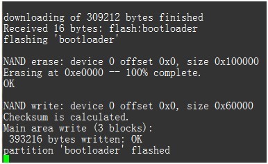 終端顯示信息如下圖所示,燒寫即bootloader成功。