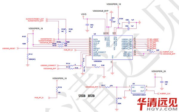 usb hub芯片幾個關鍵管腳連接如下: