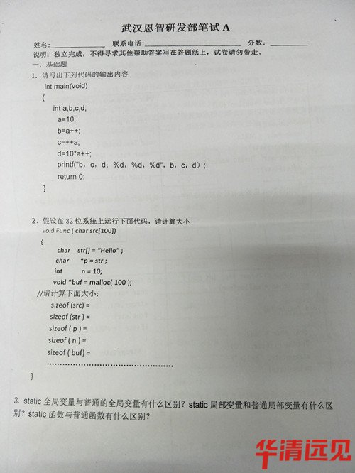 下面是我在武漢美電恩智電子科技面試時做的面試題,當時做題的時候拍的,還是挺清楚的,對于面試嵌入式研發崗位的工作來說,更多的題型是邏輯問題,所以在這方面是需要好好下功夫的,而且不管面試哪家公司,里面的題型都是差不多的,你可以看看你這些題型都掌握了沒。