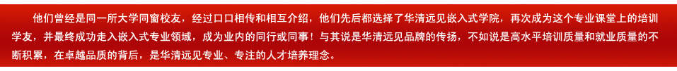 我們公司主要是做物聯網方面的,和華清培訓的方向是一致的,來的學員還不錯。希望以后多給推薦一些,長期合作。