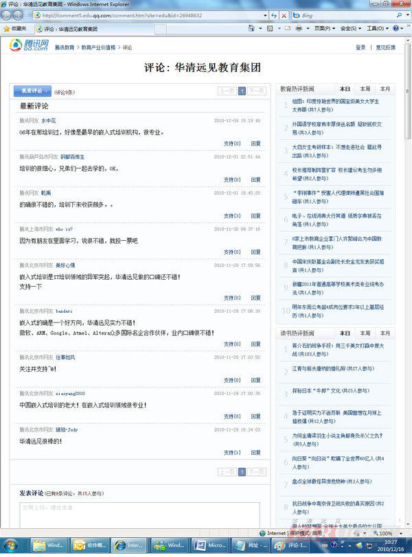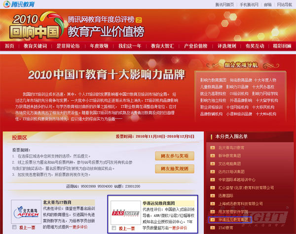 華清遠見入圍“2010IT教育十大影響力品牌”
