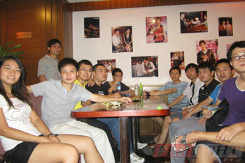 隨后我們在兩張大桌前坐下,開始邊吃邊聊等待著放映時間。有的學(xué)員還帶了撲克以做消遣。玩的鬧的吃的逛的,很是熱鬧。一掃四個月的學(xué)習(xí)壓力,看著他們玩的愜意,我深深的笑了。