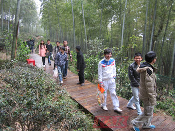 爬到東佘山山腰的時(shí)候,看到那里有個(gè)觀音許愿池,同學(xué)紛紛拿出自己的硬幣,向池中投硬幣,希望硬幣投中自己的愿望可以成真。帶著美好的愿望,同學(xué)們繼續(xù)向向往已久的竹林出發(fā)。終于到竹林了,同學(xué)們抑制不住內(nèi)心的欣喜,有的繞著竹子不停地看著、撫摸著,有的認(rèn)真仔細(xì)的尋找新鮮的竹筍,有幾個(gè)男同學(xué)突然爬到那粗粗的竹子上面去了,像小猴子一樣可愛(ài),惹得大家不禁捧腹大笑。后在一片笑聲中,大家沿著竹林小道開(kāi)始戀戀不舍的下山了。