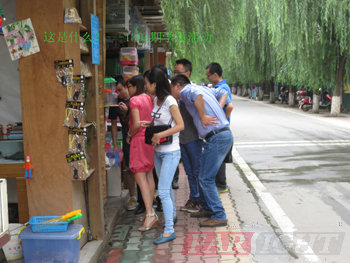 | 圖一、成都1304期學(xué)員活動合影 | 圖二、花鳥魚蟲小店門口圍觀 |