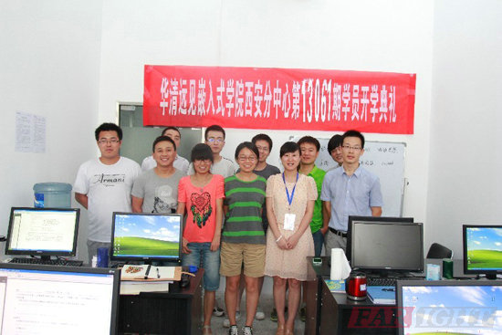 西安的盛夏,在連日的高溫下早早到來。高溫焦灼下,這個城市也漸漸開始狂躁。如一場及時雷陣雨,像隨風潛入夜一般的透意清涼,華清遠見西安中心13061班在七月一號開始了一階段的學習。自6月17號基礎補習以來,13061期的學員便開始了踏實的學習征程。在基礎補習之后,華清遠見西安分中心嵌入式Linux&Android就業班13061期學員在2013年7月1號迎來了他們的開學典禮。