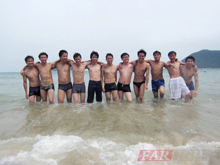 休憩片刻終于開始了瘋狂,換上泳裝,三五成群開始奔向大海。嬉戲、水仗、水上排球、沙灘排球、快艇各按所需開始年輕的旋律。間或休息片刻,大家打成一片,甚至開始兩個班級的沙灘排球比賽,兩個班級的水仗,不亦樂乎,快意瀟灑。夕陽西下,太陽終于放下它灼熱的溫度,和著海風溫柔襲上臉龐,風聲如此美妙,心如此輕靈,躺在沙灘開始享受海風的洗禮,輕聲聊聊學習、談談以后發展、探討行業未來。