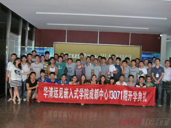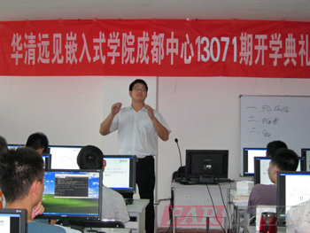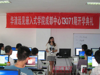 2013年7月29日,華清遠見成都中心13072期開學典禮在四川大學大學科技園實驗室610舉行,出席本次開學典禮的有成都中心校長陶老師,學術經理潘老師,教學部朱老師,就業專員龔老師,行政助理鄭老師等,本次典禮由班主任張老師主持。