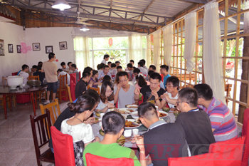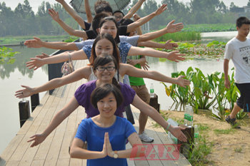 8月24日上午八點(diǎn)半,成都中心13071期全體學(xué)員準(zhǔn)時在華清遠(yuǎn)見成都中心所在的四川大學(xué)大學(xué)科技園集合,一起前往三圣鄉(xiāng)。在車上大家有說有笑,相處甚歡。公車漸漸駛近目的地,遠(yuǎn)離了城市的喧鬧,換來了一片寧靜祥和之景。剛一下車,我們就直奔荷塘,大片的綠色立馬引入眼簾,學(xué)員們?nèi)齼沙扇旱呐恼樟粲啊:商吝吷系膮⑻齑髽洌Π瓮洌瑯湎碌男』ㄐ〔荩瑡扇嵝邼m叫不出來名字,但是大伙兒還是對此充滿了好奇和驚喜。通過一條小徑進(jìn)入荷塘,大片大片的荷葉,密密麻麻,散發(fā)出一種夏日荷葉的清香。這個時候來,看到的荷花都開得又大又艷,顏色有粉有白,從綠葉叢中冒出來,仰起了清秀的臉龐,分外妖嬈。美麗而富有光澤的花瓣上,滾動著一顆一顆猶如珍珠般的露珠,迎著陽光,閃著光亮。輕風(fēng)一起,珠兒便“哧溜”一聲落進(jìn)池水里,濺起一朵小小的碎玉般的水花兒。荷葉下波光粼粼,不時有小魚小蝦游過,惹得同學(xué)們追逐打鬧,大家仿佛都回到了無憂無慮的孩童時期。從荷塘出來的時候我們整隊前往事先預(yù)定的農(nóng)家廣場--月色灣。在農(nóng)家樂自由活動期間,就業(yè)部老師組織部分學(xué)員開展了鍛煉語言組織能力的游戲,在游戲中,有些平時不太愛表達(dá)的學(xué)員也融入了集體,享受起交流的樂趣。午飯時間到,大伙兒迅速來到餐桌用餐,面對滿桌的美味佳肴,大家胃口大開,漸漸在談笑聲中結(jié)束。吃飽喝足,到小院兒里散散步,以助消化。