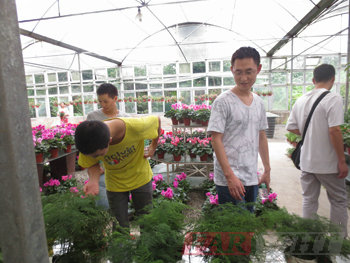 10點左右,大家到達第一站,紅砂村。首先,學員們參觀了花卉市場。這里的花卉品種齊全,種類繁多,學員們好奇的這兒瞧瞧,那兒看看,不知不覺中學到了一些花卉的常識,心情也格外的舒暢。繼續向前,學員們被花卉市場門口的大水缸吸引住了,停下了前行的腳步。圍著水缸仔細查看,原以為水缸里養了魚,走近了,才發現里面只有綠綠的水草,大家你一言我一語,猜測著水缸放置的時間、原因。直到老師們催促才依依不舍的離開。