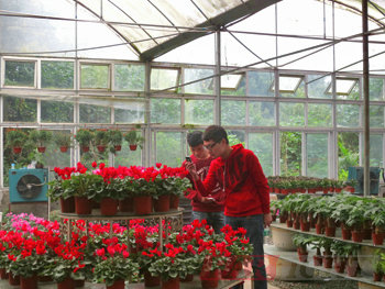 三圣花鄉位于成都市錦江區。按照城鄉統籌發展的要求,三圣花鄉先后打造了 “花鄉農居”、“幸福梅林”、“江家菜地”、“荷塘月色”、“東籬菊園”五個主題景點,是AAAA級旅游景區。13082期學員大部分都是第一次來到成都,對此次的集體出游也充滿了期待。在去往三圣鄉的公交車上,學員們一改在教室里的沉悶,心情大好,談笑風生,樂不可支。約一個小時的時間,我們就到了三圣鄉的花卉市場。學員中間也有愛好養花草之人,于是大家結伴著興致勃勃的走進了花草的世界。三圣鄉花卉市場是成都有名的,這里的花草種類繁多,形態各異,空氣中更是靜靜的散發出植物的香氣,令人心曠神怡。學員們好奇的這瞅瞅那看看,很快對一種養在透明玻璃缸里面的水生植物產生了濃厚的興趣,原來那里面不僅水質清澈,更是有一兩條小魚在里面快活的游著,很是漂亮。