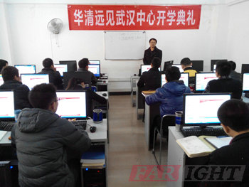 2013年12月9日,華清遠見教育科技集團武漢中心13111期進行開學典禮。參加本次開學典禮的有武漢分中心校長胡老師,華清遠見講師程老師和班主任陳老師。