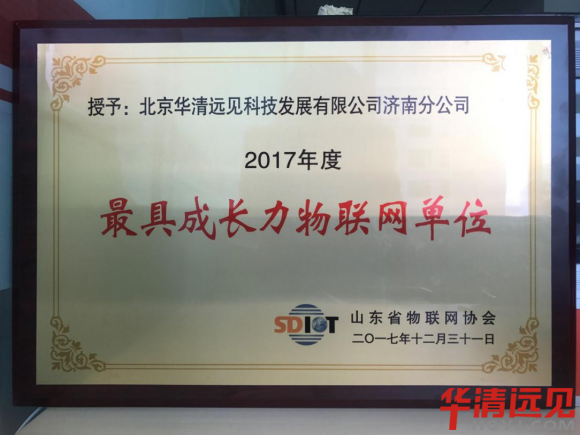 經過評選委員會的綜合考評,最終確定:北京華清遠見科技集團有限公司濟南分公司榮獲2017年度最具成長力物聯網單位、山東省2017年度物聯網產業最受關注單位、2017年度十佳物聯網解決方案多項榮譽。