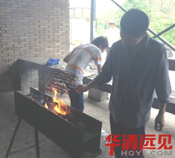 時(shí)間過的很快,中午12點(diǎn)了,大家回到自助燒烤區(qū)域,桌子上已經(jīng)擺好了工具、飲料、食物、油鹽等作料,炭爐已經(jīng)開始準(zhǔn)備生火,洗完菜的同學(xué)把腌制好的雞翅、火腿也都一并串上,燒烤活動(dòng)正式開始……