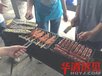 同學(xué)們圍在火炕前燒烤,其樂融融,每個(gè)人都是那么的開心。燒烤完后,大家舉杯談心,那種氛圍讓人難忘。
