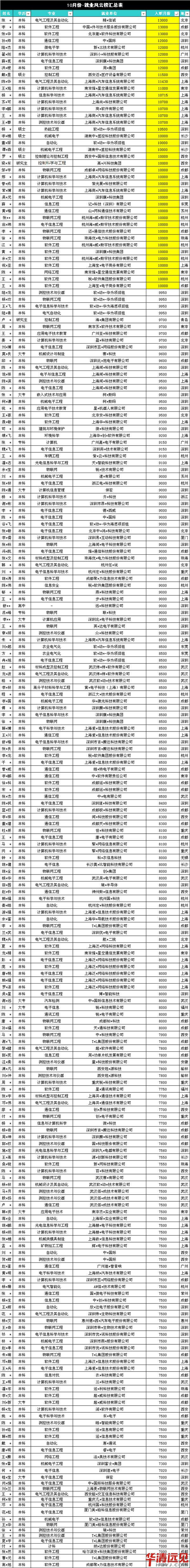 華清遠見10月高薪風云榜 入職月薪高達13000元