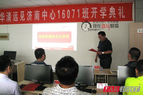 開班典禮上季總裁致辭 高校嘉賓孫主任在致辭中表示,在IT相關專業,很多畢業生都存在理論太多、動手能力不夠等問題。華清遠見教育科技集團在這方面做了大量的研究和實踐,有非常完善的管理和保障體系,對大學生未來的就業、創業都有非常大的幫助,經過綜合考察,正式將“山東師范大學MBA實踐教學基地”授予華清遠見濟南中心,今后安排安排更多的本科生、研究生到華清考察、實踐和學習。