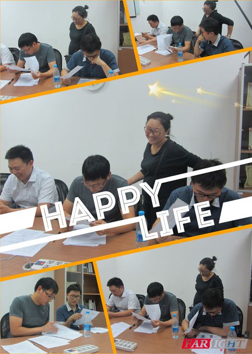 賀總面帶笑容,親自坐鎮指導面試,人事主管心潮澎湃,笑容燦爛,合不攏嘴。兩位技術大牛在認真審閱學生筆試題目。
