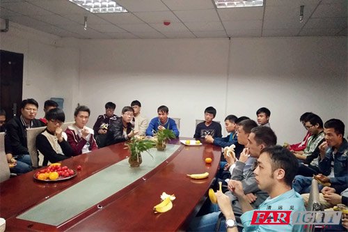 圖一:黃淮學院與學生座談 胡校長首先介紹了華清遠見的基本情況、新的教學成果和研發成果并帶黃淮學院們參觀了武漢中心的辦公區和教室。接著,胡校長和黃淮學院的與來自黃淮學院在華清遠見武漢中心實訓的學生親切座談,首先由姚書記開場,張副書記對實習情況,實習日記進行詳細說明,后由教研主任孫老師就畢業論文進行詳細介紹。在介紹完需要的工作后,與學生的實訓情況和生活住宿進行親切座談,學生積極提問,中間武漢中心的老師還給大家準備了水果,氣氛和諧融洽。