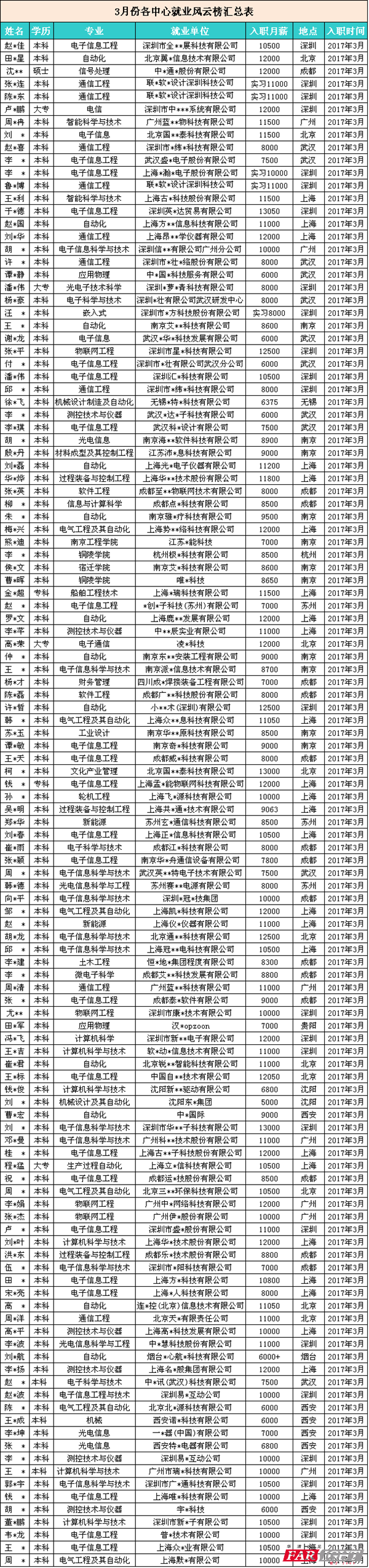 在新鮮出爐的3月嵌入式就業(yè)數(shù)據(jù)中 華清全國11大分中心均喜報連連 高薪榜單屢屢被刷新~ 實習(xí)薪資高達11000元!