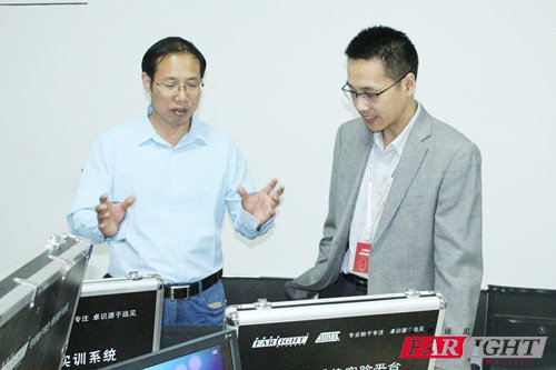 首先譚老師簡單介紹了華清遠見的發展和所經營的產品,作為唯一一個擁有研發中心的培訓機構,我們研發部有近200位專業研發工程師、50余套自主研發的教學設備、300余所高校實驗室建設。其中華清遠見研發的實驗設備受到洛陽理工校的高度贊譽。就本次合作,楊院長表示:希望企業能多給學生們提供職場鍛煉的機會,多給學生提供就業實踐機會。通過理論與實踐的結合,達到校企共贏的新局面,使學院教學模式進入一個新的里程碑。