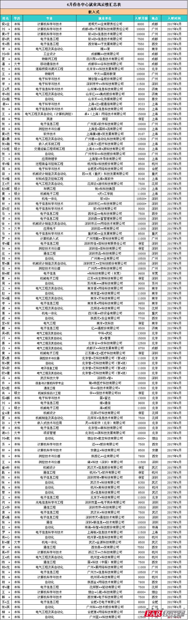 五一小長假結束了 還沉浸在3天假期中的華妹 剛一上班就收到了不得了的東西 來自就業部美女老師統計的 嵌入式4月高薪就業榜!666~~