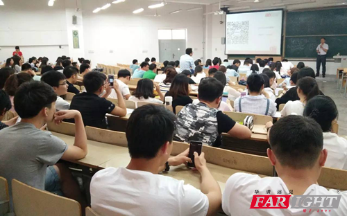 隨后西安華清遠見副校長譚老師講解,首先介紹了華清遠見的發展和經營理念,我們和各大高校強強聯手,在IT行業不斷創輝煌,華清遠見良好口碑也得到同學們的贊賞。接著譚老師憑借自己多年在IT行業的經驗積累嫻熟的給在場180名左右學生分別講述嵌入式、安卓、H5、VR/AR行業現階段發展情況和近幾年的就業情況,譚老師如云流水、幽默般的講說展示了華清老師的專業和作為一名IT人士的魅力,講座內容結合身邊故事,深深吸引了學生們關注的目光。后,給同學們講解了實習實訓移動互聯Android項目《探險助手》的基本情況。