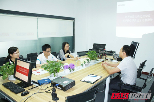 (左1華清譚副校長(zhǎng)、左2寶文理段書(shū)記、左3寶文理也是華清畢業(yè)生武同學(xué)、左4寶文理測(cè)控王老師、左5寶文理測(cè)控班主任高老師) 華清遠(yuǎn)見(jiàn)04年創(chuàng)立,不管是企業(yè)內(nèi)訓(xùn)還是校企合作,都秉持“做良心教育,受人尊重的教育”的原則砥礪前行,近幾年更是和各大高校強(qiáng)強(qiáng)聯(lián)手,幫助十余萬(wàn)學(xué)子成功就業(yè)。其寶雞文理與西安華清遠(yuǎn)見(jiàn)在校企合作上也建立長(zhǎng)期友好合作關(guān)系,優(yōu)勢(shì)互補(bǔ),為學(xué)生高端就業(yè)貢獻(xiàn)自己的力量。此次到訪華清譚副校長(zhǎng)熱情接待,并帶領(lǐng)老師們一起走進(jìn)實(shí)習(xí)環(huán)境。 華清譚副校長(zhǎng)簡(jiǎn)述了實(shí)訓(xùn)課程進(jìn)度和學(xué)生們的學(xué)習(xí)掌握程度,并詳細(xì)介紹了華清老師為實(shí)習(xí)生打造的準(zhǔn)職業(yè)人的教學(xué)模式。隨后,校企雙方就學(xué)生實(shí)訓(xùn)做了更深入交流探討。