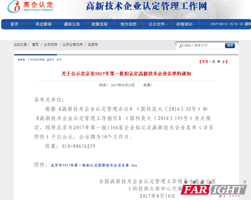 2017年8月10日,根據科技部、財政部、稅務總局《高新技術企業認定管理辦法》和《高新技術企業認定管理工作指引》的相關規定,經有關部門組織專家評審、公示等程序后,北京華清遠見教育科技有限公司(簡稱:華清遠見教育科技集團)被認定為“級高新技術企業”。這是華清遠見教育科技集團堅持以技術為先導,以自主研發為動力所取得的一項重大發展成果。該項成果的取得,不僅是華清遠見教育科技集團長期堅持技術創新的有力詮釋,同時也代表著企業具備了自主創新的科技研發實力。