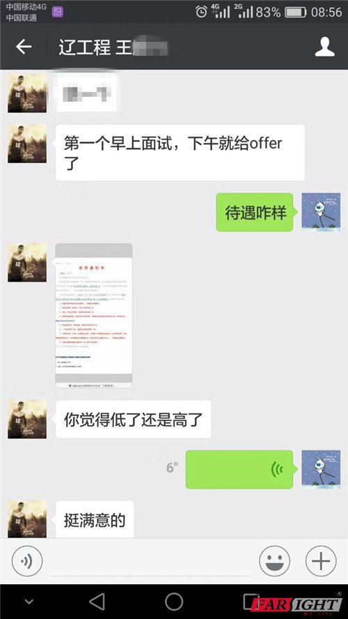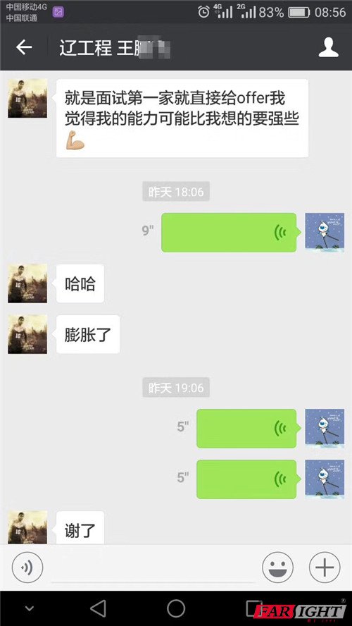 去年十月報名,今年3月來華清學(xué)習(xí),7月畢業(yè)工作!現(xiàn)在被一家上市公司錄用,也是他在杭州面試的第一家公司,從去杭州到面試通過只用了不到兩天的時間,如果當初不是選擇來華清學(xué)習(xí)深造,怎么可能在短短兩天的時間就找到這樣一份令人羨慕的工作。他高興地說,自從上了大學(xué)就沒讓朋友感覺過我的優(yōu)秀,近一次感覺自己優(yōu)秀就是在華清獲獎得了一個鼠標,我覺得我的能力可能比我想的要強,非常感謝自己當初做的決定,讓自己一躍成為了人生贏家。 就這樣一位萬千大學(xué)生中的普通一員,真實存在于你我身邊的普通的不能再普通的學(xué)生,當初就是因為相信我們,選擇了華清,才成就了現(xiàn)在的他,他也終于在朋友面前挺直了腰桿,可以驕傲的和朋友炫耀自己的工作,更足以對得起自己這四個月的艱苦奮斗。華清遠見和你一樣高興! 下面是該同學(xué)和華清老師炫耀的對話截圖,拉仇恨啦。 ![]() ![]() ![]() ![]() ![]() ![]() ![]() ![]() 看我們這位王同學(xué)多開心,努力過后的成就感,滿足感,自信心,一個字“爽”! 華清老師這樣說:“膨脹一下又如何,嘚瑟一下又咋滴,加油吧帥哥!你的職業(yè)生涯剛剛開始,后面的路還長,下個目標是每天被獵頭公司打電話騷擾,挖你!到時候再來跟我嘚瑟!” 你還在為找不到滿意工作急的抓耳撓腮嗎?你還在羨慕別人的高薪高起點工作嗎?你還在承受女朋友“買買買”的壓力嗎?看你身邊的朋友都已經(jīng)高薪就業(yè)了,你還有什么理由碌碌無為,來華清遠見是你好的選擇,沒有包裝“假簡歷”!沒有不靠譜“過萬高薪承諾”!實實在在的學(xué)點東西,穩(wěn)穩(wěn)當當?shù)穆l(fā)展,腳踏實地的干活掙錢,提升各項專業(yè)技能,不用多久,你就會升職加薪、當上總經(jīng)理、出任CEO、贏取白富美、走上人生巔峰,想想我都有點小激動呢! 相關(guān)資訊