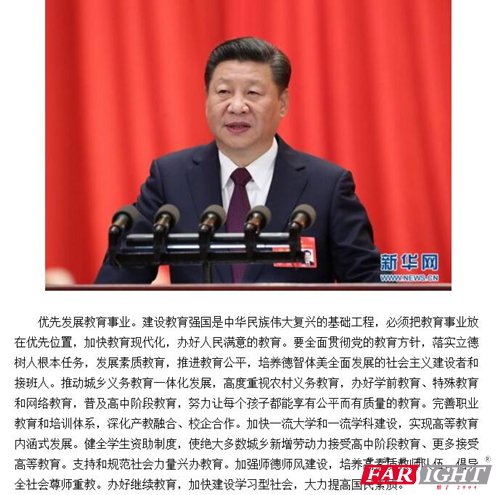 昨天上午九點,共產黨第十九次全國代表大會在北京人民大會堂開幕。會上,習近平主席強調了教育的重要性: