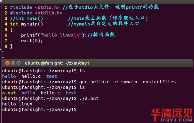 C語言沒說C程序一定要有main()函數。c的編譯器工作之前先要做cpp(比如頭文件展開)一樣,編譯完了以后還要鏈接成可執行文件。鏈接的時候需要知道程序的入口是什么。不管是什么總歸得有的名字,所以main被選中了。你不喜歡這個名字,可以指定你自己的入口。 參見如下文檔的 -e 或者--entry參數。 main函數就是這個約定好的用戶代碼默認入口 gcc hello.c -e mymain -nostartfiles 編譯后發現我們的可執行文件a.out生成了,并且執行是,我們的hello linux也出現了 -e參數指定我們的程序的入口 -nostartfiles 連接的時候不使用標準系統的啟動文件