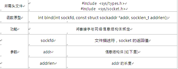 將套接字與服務器網絡信息結構體綁定 bind( )