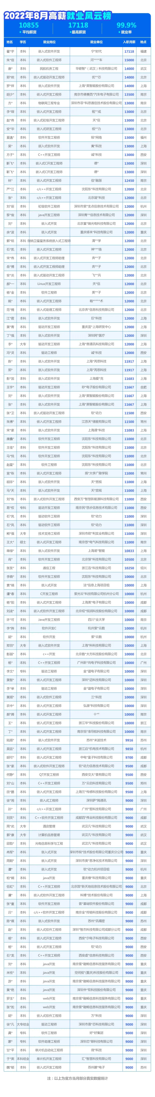 我們首先來看一看本月的就業情況,當然這只是部分數據,祝愿大家都能拿到理想的offer和薪資!