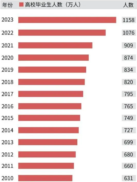 工作遲早都得找,趕早別趕晚!華妹給大家分享一組數(shù)據(jù),據(jù)教育部統(tǒng)計(jì),2023屆全國(guó)普通高校畢業(yè)生規(guī)模預(yù)計(jì)達(dá)1158萬(wàn)人,同比增加82萬(wàn)人。而北京今年的研究生已經(jīng)超過(guò)了本科生。