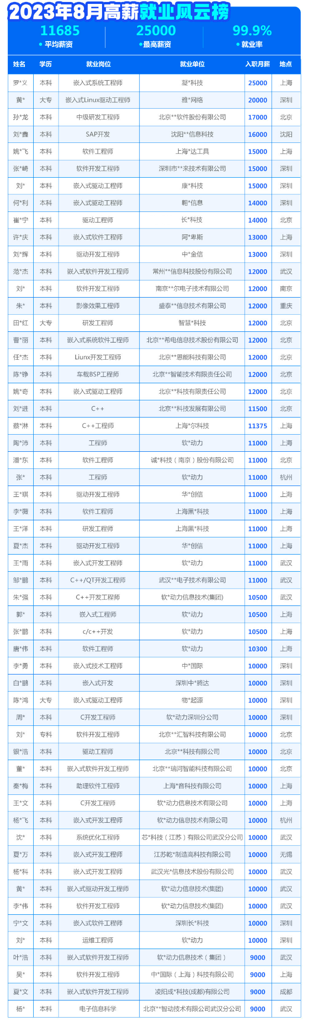 擔(dān)心入行門檻高、經(jīng)驗(yàn)不夠豐富?沒關(guān)系,華妹給你準(zhǔn)備了8月相關(guān)崗位高薪就業(yè)學(xué)員的信息,均薪11685,最高薪資可達(dá)25K,就業(yè)率99.9%,千萬不要錯(cuò)過!😏
